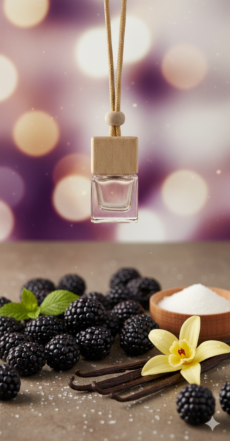 Savourez la rencontre parfaite entre la mûre juteuse et la vanille crémeuse. Ce parfum à la fois gourmand et apaisant emplit votre voiture d’une chaleur douce et enveloppante.